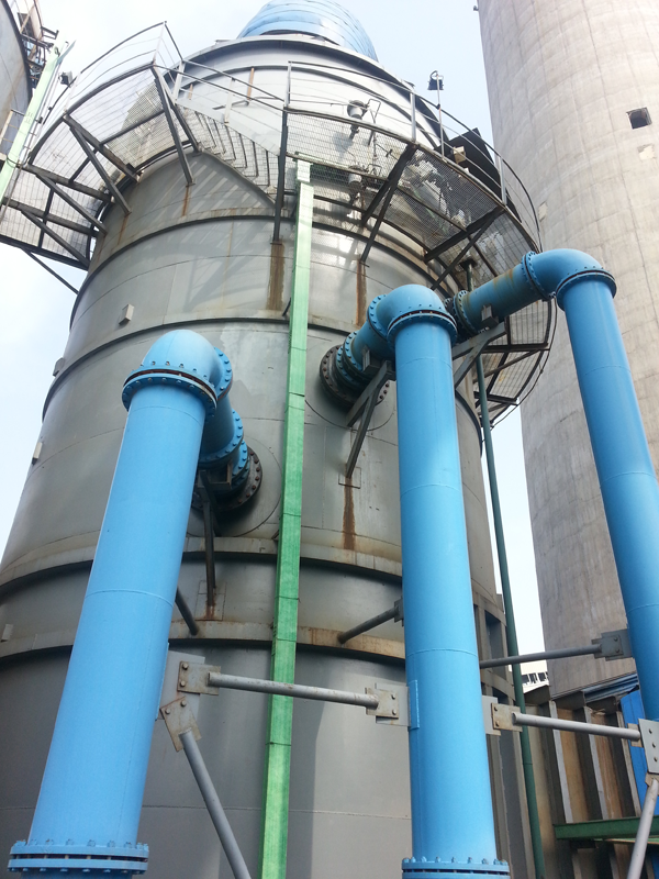 本公司烟气脱硫工程主要包括电石渣—石膏法脱硫、碱法脱硫、石灰石(石灰)-石膏法脱硫、氨法脱硫、双氧水法脱硫。通过空塔喷淋技术、动力波逆喷洗涤技术和高效湿式电除雾(尘)器实现烟气超低排放要求。满足了硫酸、有色冶炼、氯碱、化肥、燃煤锅炉等行业客户超低排放要求。